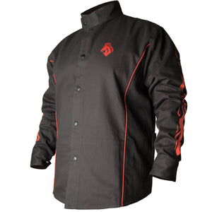 Black Stallion BSX Contoured FR Cotton Welding Jacket, Black with Red Flames, BX9C